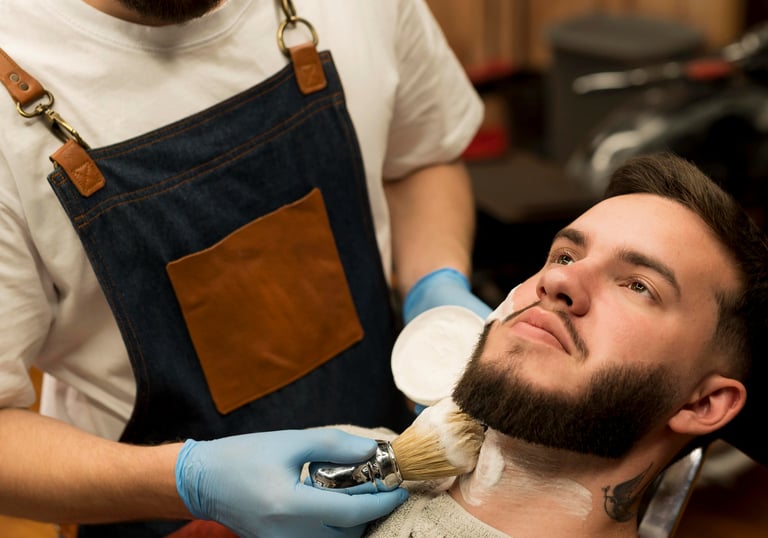 Sharp fades, beard styling, and modern masculine grooming.